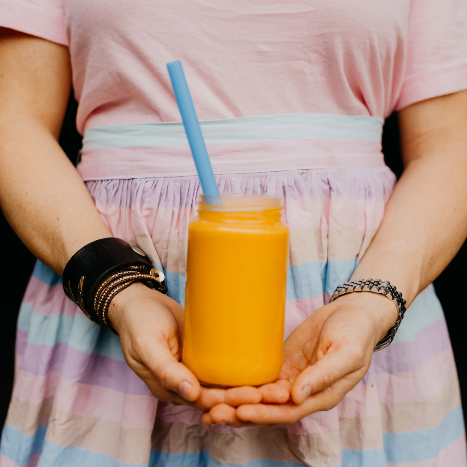 April’s smoothie of the month is the Glow Getter. This dreamy orange treat lives up to its name & will give your skin all it needs to get its glow on! (Yes, I shamelessly love puns.)